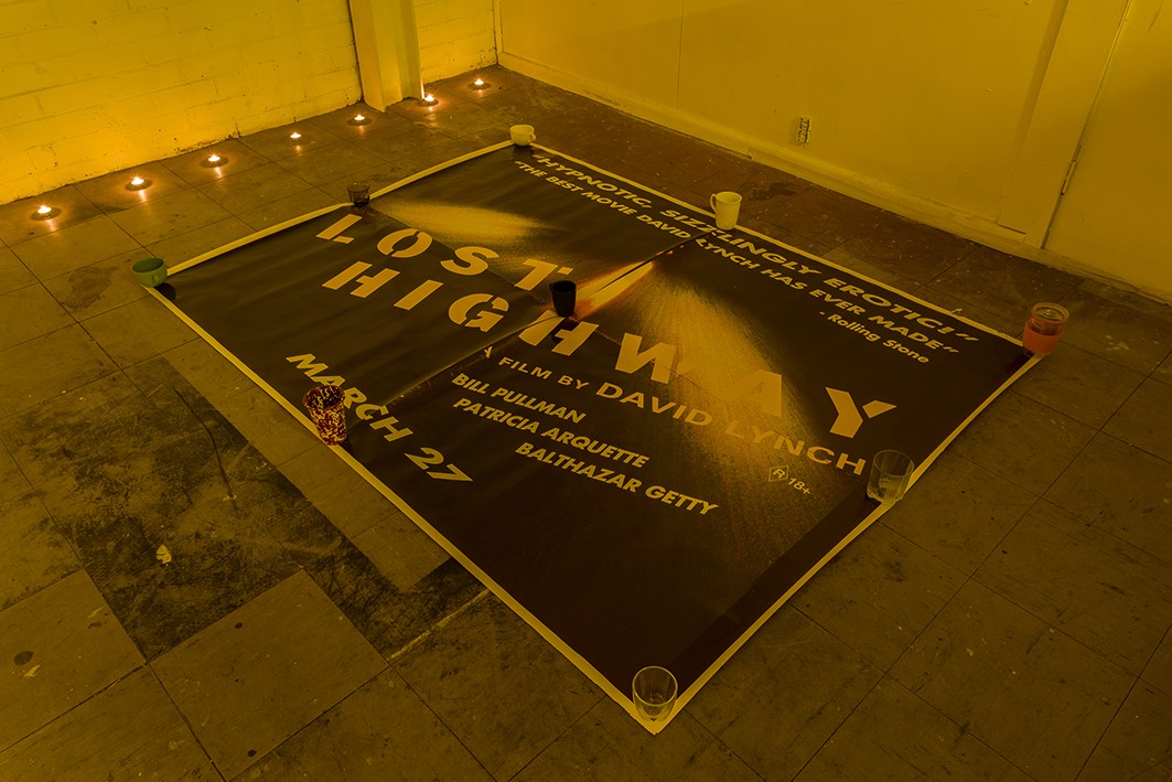 Kate Meakin, 'Untitled', Assorted drinking cups on Lost Highway film poster, 2011