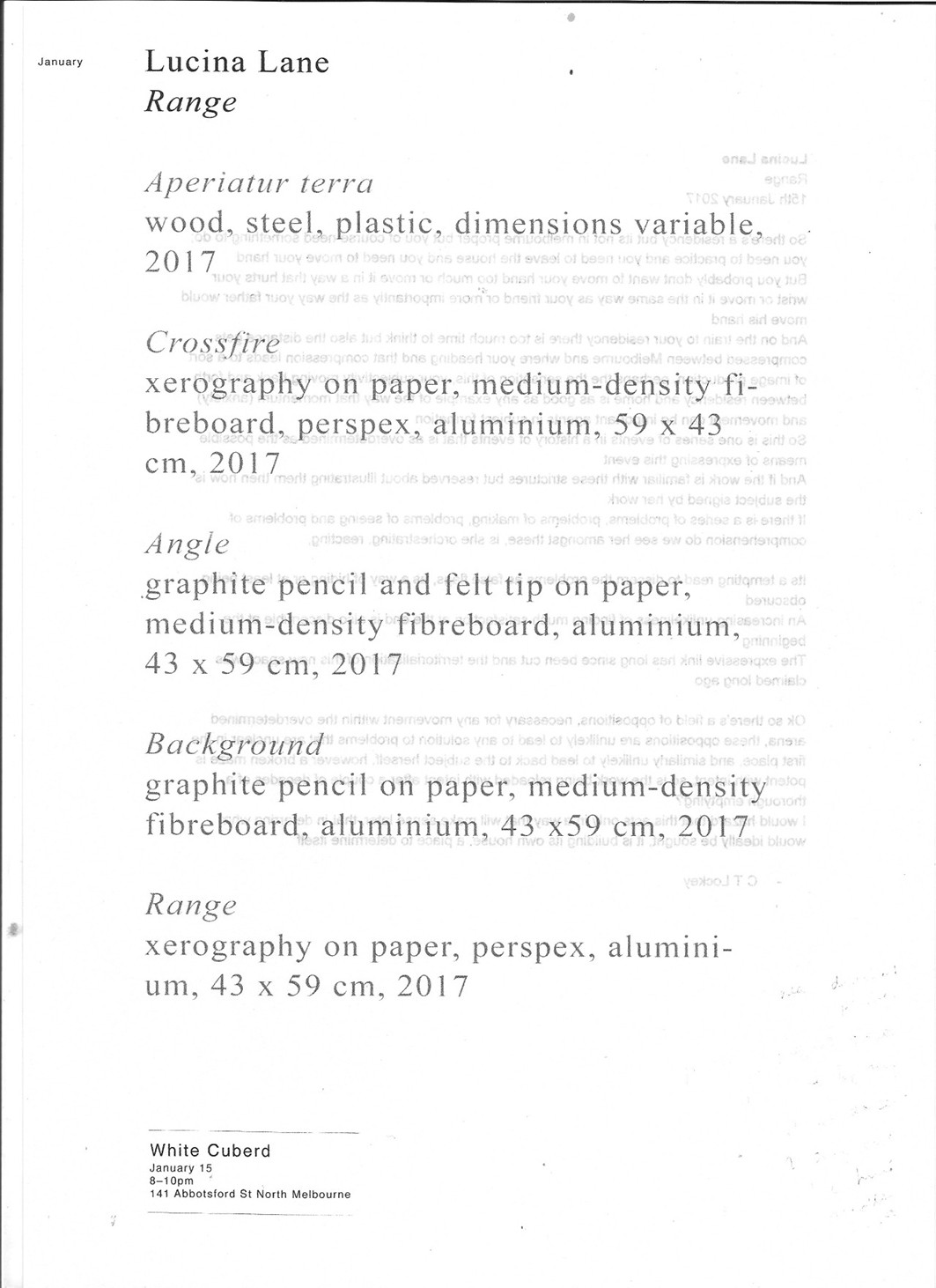 White Cuberd 8 – 10 pm 141 Abbotsford St North Melbourne Sunday 15th January 2017